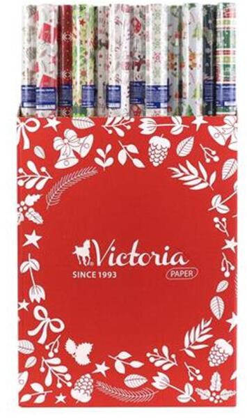 Victoria Paper Csomagolópapír, íves, 70x200 cm, 60 tekercs, vegyes karácsonyi minták, VICTORIA PAPER - 60 tekercs (CSPVPV)