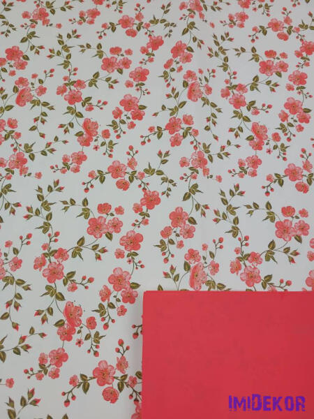 Vízhatlan mintás ív 70x100cm - Barackvirágos - Piros